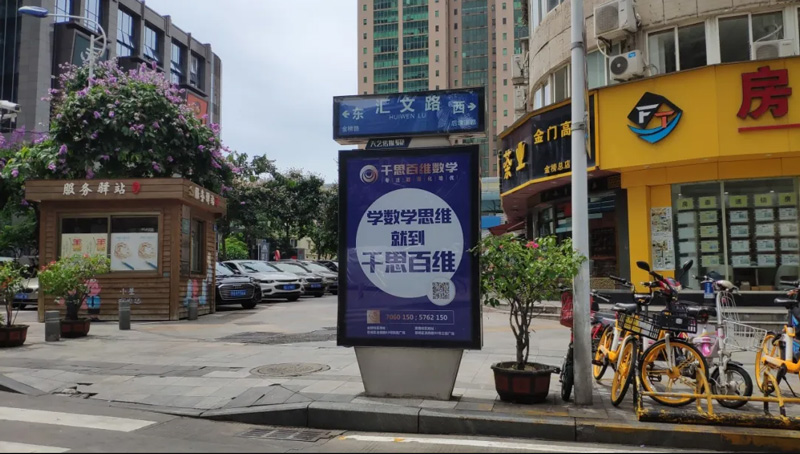 廈門千思百維教育聯(lián)袂天藝傳媒公司在廈門市各大重點(diǎn)路段針對性投放路名牌廣告。