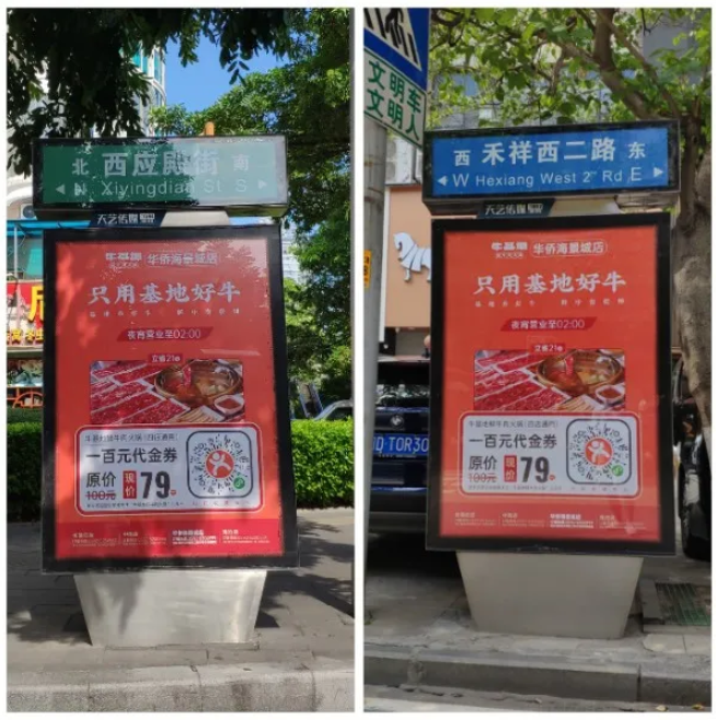 ?;嘏c天藝傳媒強強聯(lián)手,精準宣傳將?;厝A僑海景城店附近的城市路名牌戶外媒體進行定點宣傳。